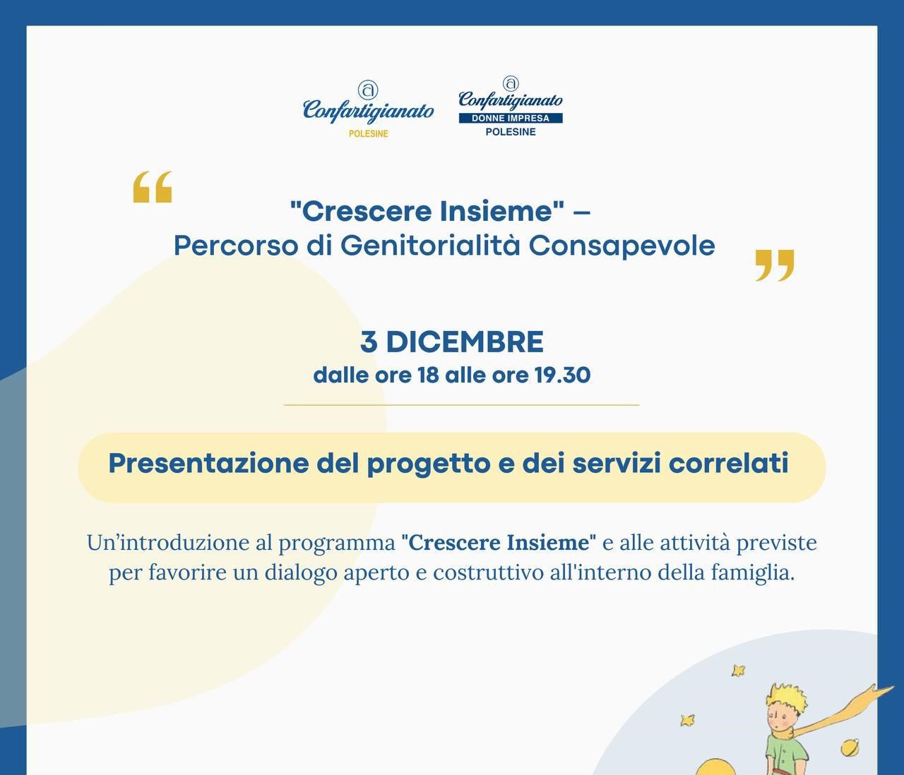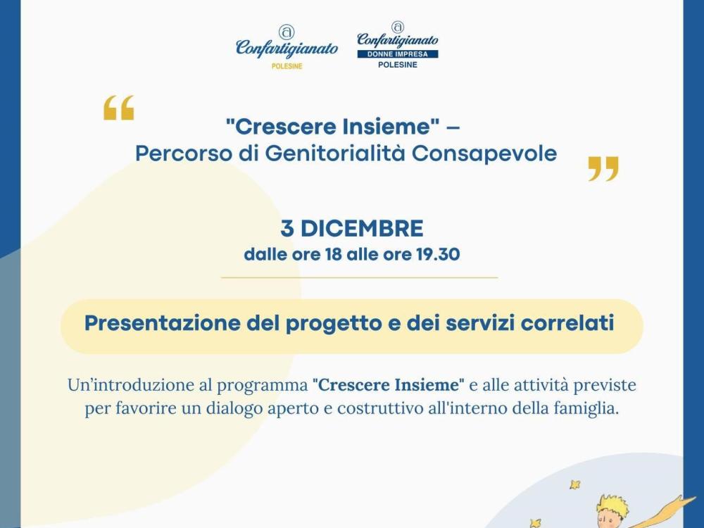 il Movimento Donne Impresa Polesine organizza, presso la Sede di Confartigianato Polesine, quattro incontri durante i quali verranno affrontati temi fondamentali per la crescita personale e relazionale tra genitori e figli.