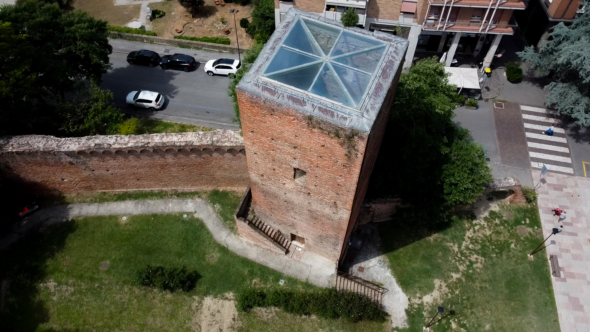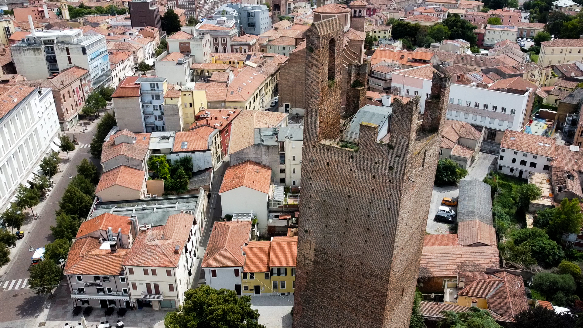 La Torre Donà, con i suoi 51,26 metri, è una delle più alte torri medievali italiane. Costruita in mattoni e laterizi regolari, presenta poche finestre ad arco, decorate con merlature ghibelline. La sua inclinazione è dovuta a un cedimento del suolo, ma nonostante questo, rimane un'opera architettonica di grande impatto.